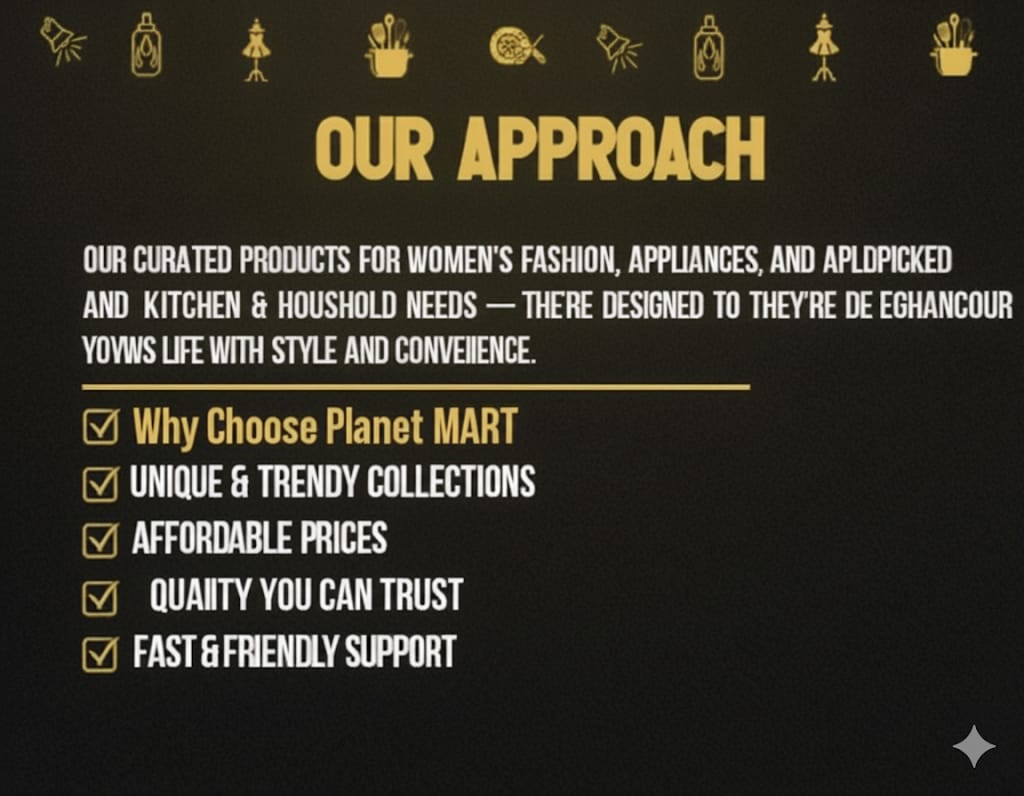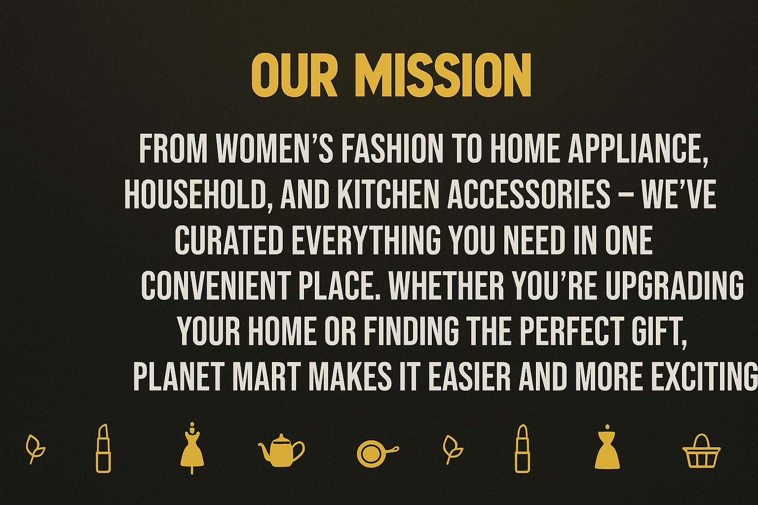 At Planet MART, we believe your home is more than just a place — it's a reflection of your personality, style, and comfort. That’s why we bring you a carefully curated collection of everyday essentials and stylish inspirations, designed to elevate your living experience.