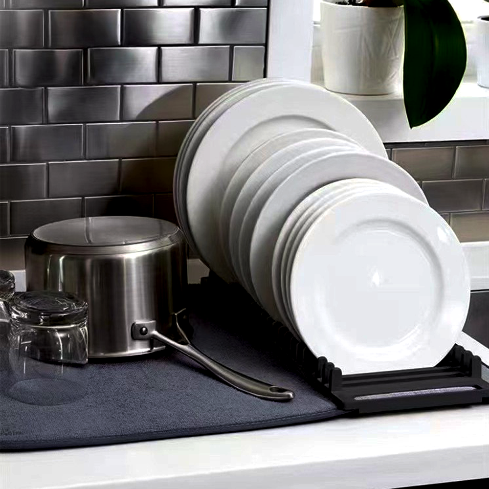 This dish drying rack is not only used as a drying mat, but also as a storage mat to help you organize plates, glasses, cutlery, pot lids, pans, etc.
